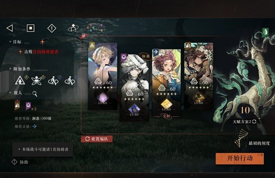 500-2 薪血 没有玛丽安娜,上了梅兰妮来增伤(截图忘换心相了,实际带的50级的大娱乐),实测可行。尽量让诺谛卡薪血叠高一点再打,拖到10回合后难度会明显上升。背后灵用狼烟,加点见图。