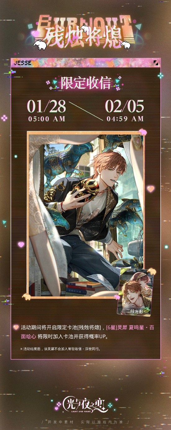 以上就是光与夜之恋众相之墟,夏鸣星限时活动1月28日开启的全部内容了,更多游戏资讯,攻略内容敬请关注切游网,您的支持是我们努力的动力!