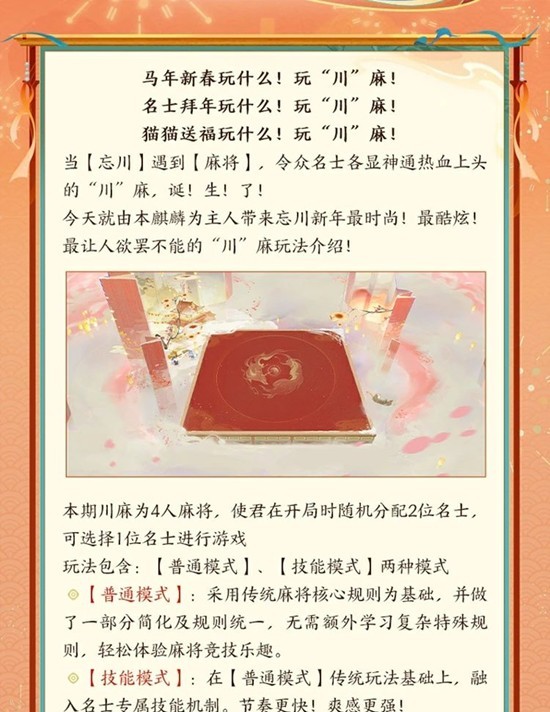 以上就是忘川风华录【新春活动预告】“川”麻2月5日即将上线的全部内容了,更多游戏资讯,攻略内容敬请关注切游网,您的支持是我们努力的动力!
