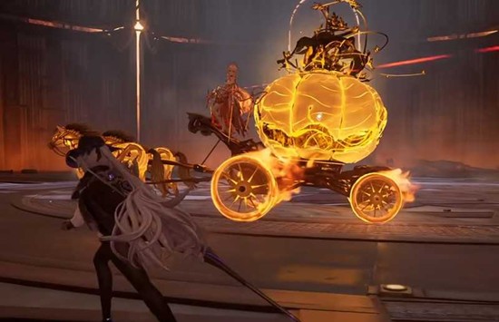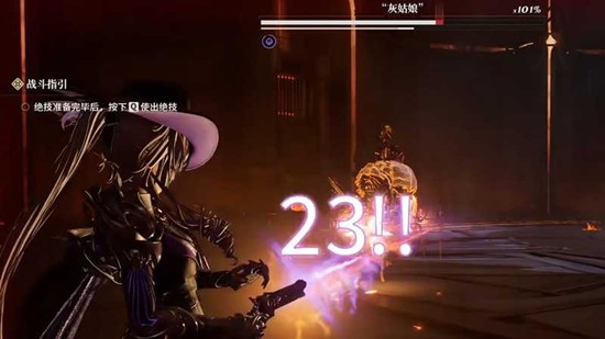 灰姑娘登场时会有明显的准备动作,她会从空中高速下落,伴随着大范围的视觉干扰和持续的笑声,并策马发起直线冲锋。此时她体表会浮现出两道环形的判定光效,玩家需要精准地按下Shift键,利用无敌帧来闪避这次攻击。
