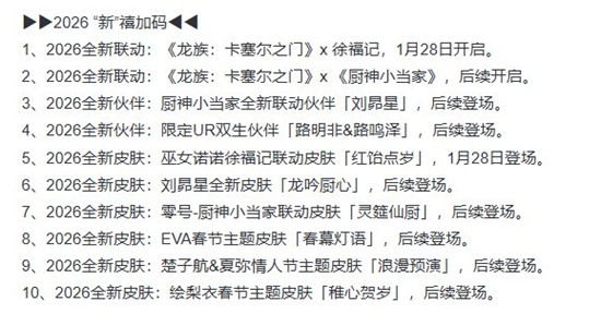 龙族:卡塞尔之门2026"新"禧加码,新春预告第一弹正式公开!游戏将携手徐福记、《厨神小当家》两大IP展开联动,多位全新伙伴与十余款主题皮肤即将登场。