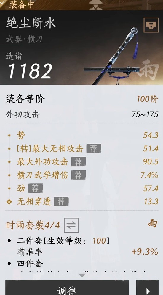 【武器】处决回精元(带吸血最好)、另一把武器定音看自己喜欢、【环】闪反后15秒吸血、【佩】特殊技打强韧目标自身2秒强韧、【头】解控后2.8秒强韧、【衣服】受击状态减伤28%、【靴】推荐闪避回血(回真气也行)、【腕】卸势回真气