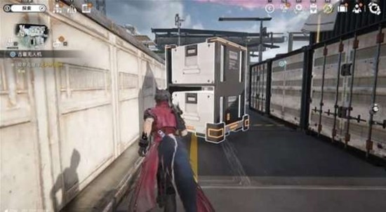 接取地点在货运平台处,使用后面的绳索上去。乘坐电梯下楼后,踩着橙色小箱子跳到另一边,即可拿到第一个无人机。