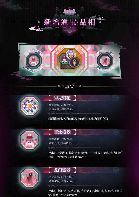 茧成娟还是很强;诸灾有迹+争商机+福祸相依有奇效,诸灾有迹(或者不期而遇/筹谋全换成厉钱的选项,效果是一样的)把钱盒里钱都换成厉钱,福祸相依每有一个厉钱多一张票券,争商机每投出一个厉钱给15源石碇,转钱转的也很快,如果有藏品小八界的话效率更高,一轮投钱最多投出七个,收益可观;龙门胜景,每投出一次给8源石碇,效率有点低了,但是强在扔了之后给五个藏品,这个后面也会说