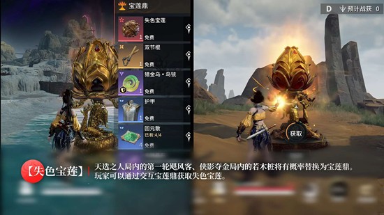 天选之人/侠影夺金模式:局内第一轮飓风客与若木桩将有概率替换为【宝莲鼎】,与之交互即可获得【失色宝莲】。携带【失色宝莲】的英雄将在全地图范围内持续暴露自身位置,且该道具掉落在地图或魂冢中时,会在全图小地图显示图标,其他玩家均可前来"截胡"。