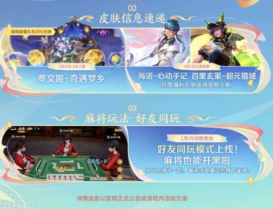 春节将至,王者峡谷已经进入"过年模式"!本周游戏内迎来一波重磅更新:既能白嫖星币的【星币储存罐】正式营业,又能决定春节返场名单的【无双搭子投票】火热开场,还有蔡文姬全新史诗皮肤【奇遇梦乡】萌趣登场,以及备受期待的稷下广场麻将【好友同玩模式】正式上线。
