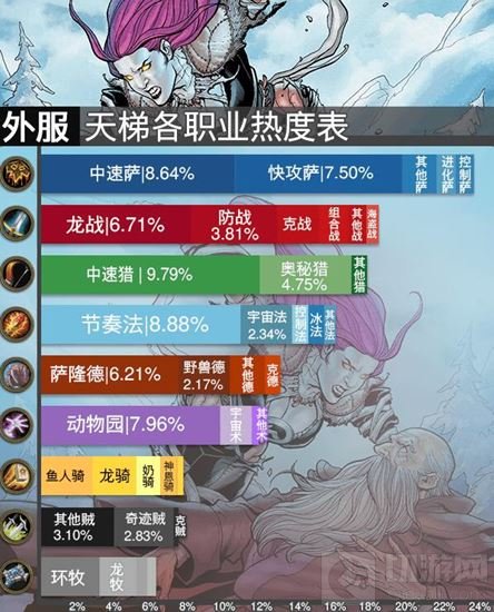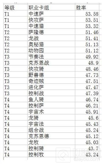 1.中速萨胜率已经登顶,这对我们来说并不奇怪。在卡拉赞发售之后,这个卡组在天梯上的表现很快就有所提升。它稳吃快攻萨的能力导致了萨满内部剧烈的变化。随着萨满有了两种游戏中胜率最高的卡组,我们等着看是否会出现一个能把萨满从热度第一的宝座上拉下来的职业。