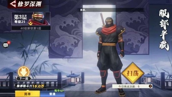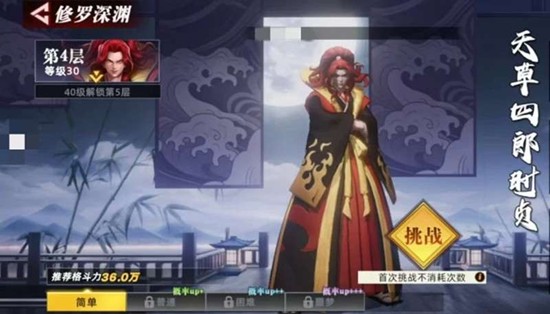 玩家可以在地图中找到对应的NPC来开启修罗深渊的入口。这里每一层都设有专属的守关BOSS,其难度会随着层数稳定提升。前面四层的BOSS配置比较明确,第一层和第二层是霸王丸,第三层是服部半藏,第四层则是天草四郎时贞。