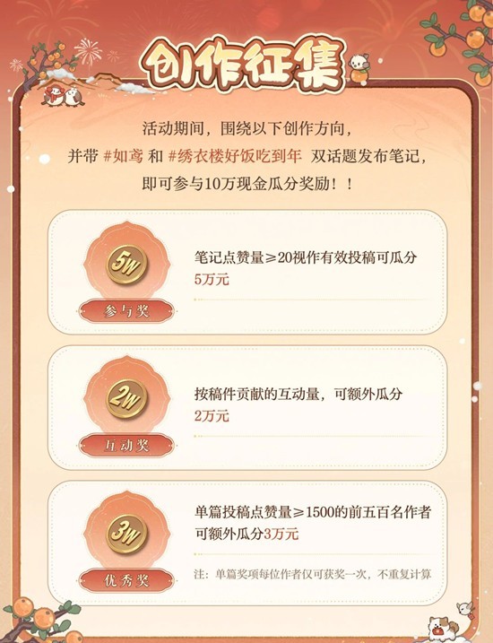 《如鸢》“绣衣楼好饭吃到年” 小红书平台创作者征集活动今日开启,期待殿下的参与。