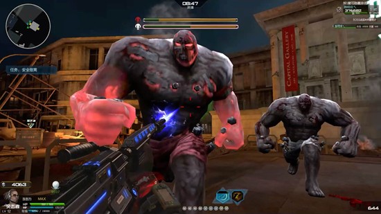 在逆战未来的这场战斗中尽量绕到侧面或背面进行输出,正面交锋风险太高容易被技能击中,特别是二壮扔石头时是直线轨迹,站在侧面躲避起来轻松不少。