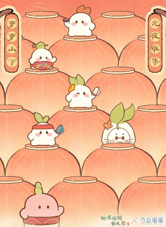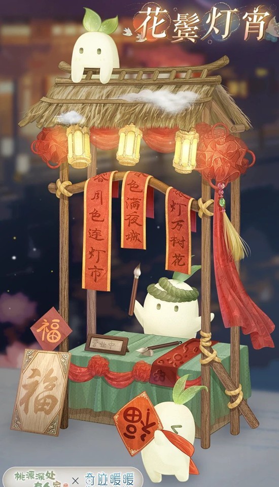 【桃源深处有人家×奇迹暖暖】联动套装【花鬓灯宵】即将上线~元夜雅集,锦联盈愿!快来萝萝山下游玩,收集萝萝印章,沉浸式感受热闹与温暖的灯市氛围,免费获取精美元宵联动套装吧~