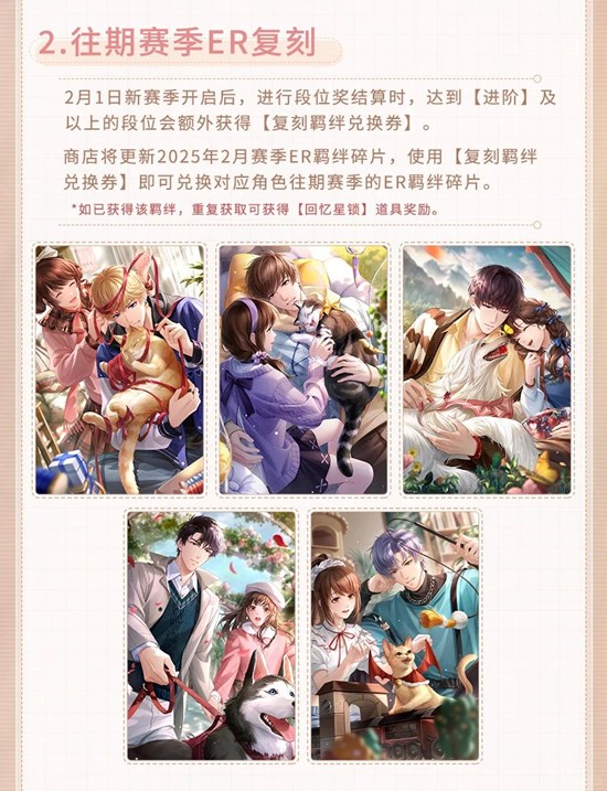 1.在宠物直播PK结算达到进阶及以上段位,可额外获得【复刻羁绊兑换券】奖励。