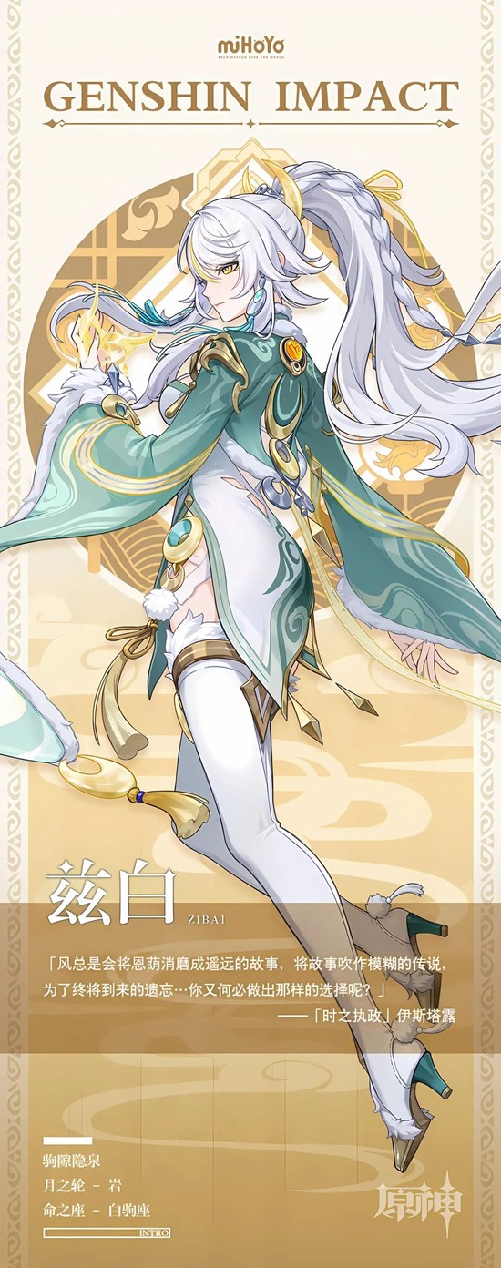 (璃月的白马仙人,月结晶站场主C,单手剑角色,战技启动,夜晚回能,队友比较刚需少女,上限高,辅助少,月结晶体系没有五星辅助,需要高命叶洛亚,目前还未实装,但娜维娅的地位岌岌可危)