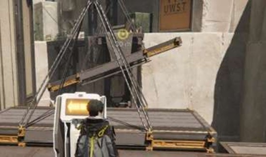 跳上平台与机器互动后,界面会显示左右移动选项。选择相应的方向就能操控吊机移动空中悬挂的建材位置。将建材移动到合适位置后,原本的鸿沟会被填平形成可通行的道路。完成这一步后就能继续前进,顺利抵达档案库完成任务。