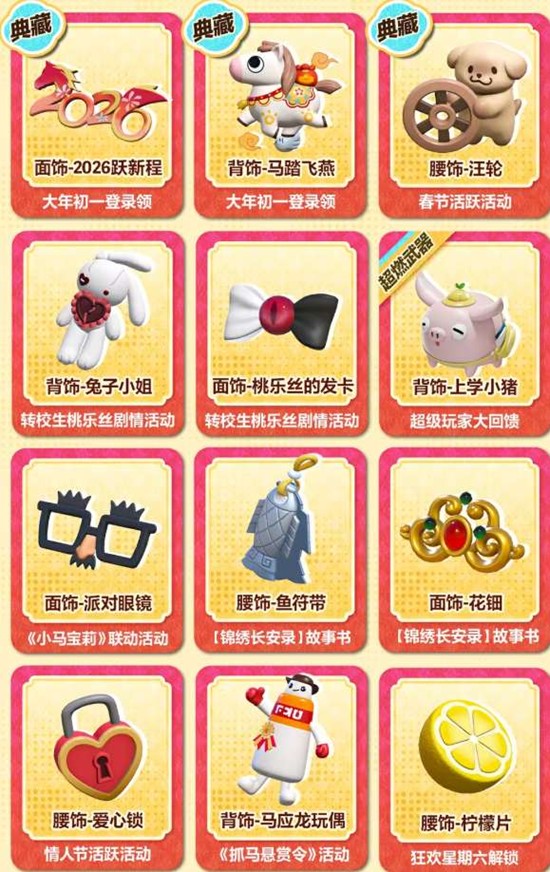 典藏配饰:面饰-2026跃新程、背饰-马踏飞燕、腰饰-汪轮(大年初一登录即领)。