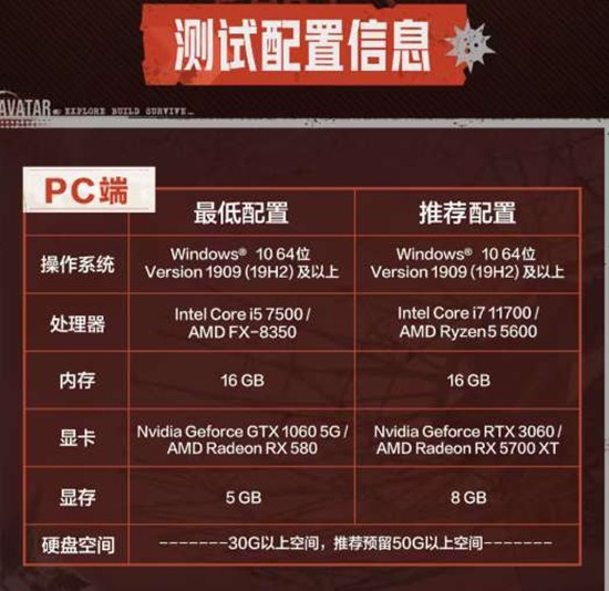 对于追求2K分辨率的幸存者,建议配备Intel Core i7-12700F或AMD Ryzen 7 5800X处理器,32GB内存,Nvidia GeForce RTX 4060或AMD Radeon RX 6700 XT显卡,显存10GB。若追求4K极致画质,则需要Intel Core i9-12900K或AMD Ryzen 7 7800X3D处理器,32GB内存,Nvidia GeForce RTX 3080或AMD Radeon RX 7800 XT显卡,显存同样为10GB。