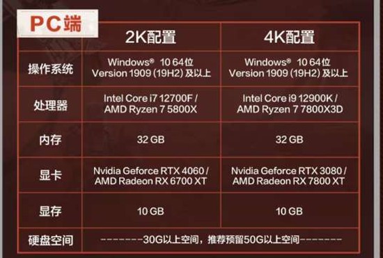 操作系统同样为Windows 10 64位Version 1909(19H2)及以上。处理器推荐Intel Core i7-11700或AMD Ryzen 5 5600及以上型号。内存保持16GB即可满足需求。显卡建议Nvidia GeForce RTX 3060或AMD Radeon RX 5700 XT,显存8GB。硬盘空间建议预留50GB以上,以应对游戏后续的内容更新和地图扩展。