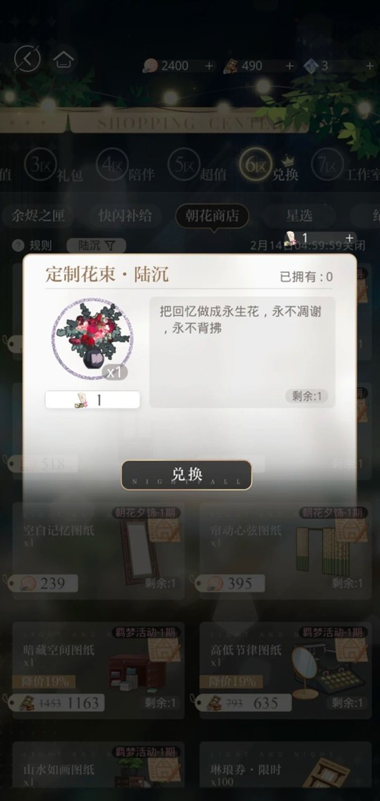 全勤玩家今日可完成所有限时计划,兑换完商店内一期所有免费物品,获得4200花缘币(图中2400是因为兑换了1800的簪花瓶道具·限时),可兑换30个免费簪花瓶(限时的及时用掉)。