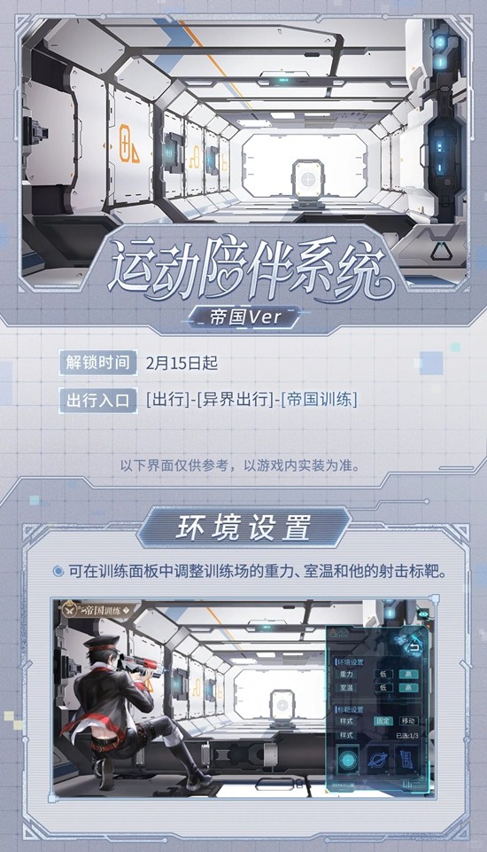 时空中的绘旅人功能更新·运动陪伴将于2月15日上线~选定自己的训练内容,和他同步训练吧。训练时可以触发他的语音反馈,组间休息可以和他尽情互动。完成训练后会自动打卡,可以在训练记录中查看近3个月的训练情况。一起来和小编看看吧~