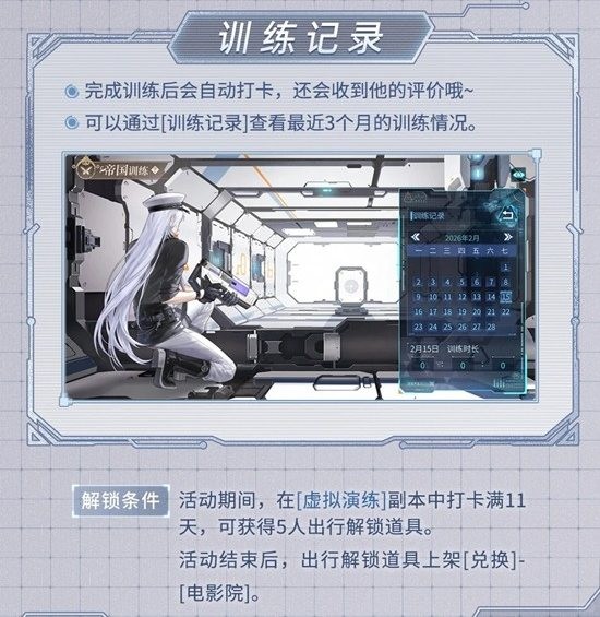 ►活动结束后,[帝国训练]解锁道具上架[采购]-[兑换]-[电影院],可通过电影院的模拟战斗积累电影票兑换。