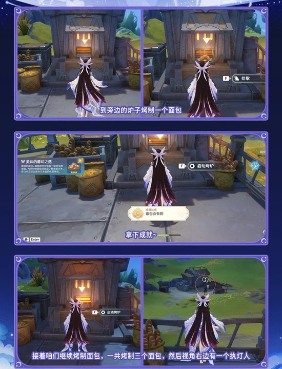原神月之四新成就「面包会有的」跟随攻略,找到NPC别蕾娜,到旁边炉子烤面包即可