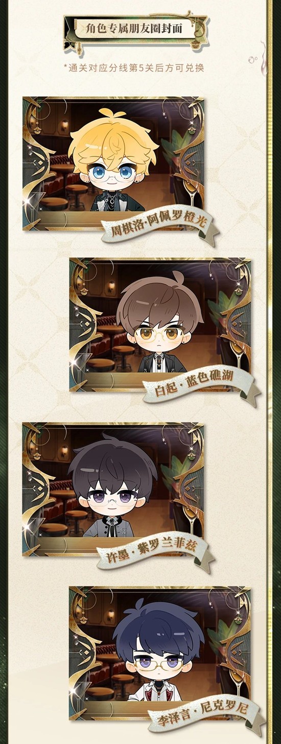 b.通关对应分线的第5关后,可兑换角色专属朋友圈封面。
