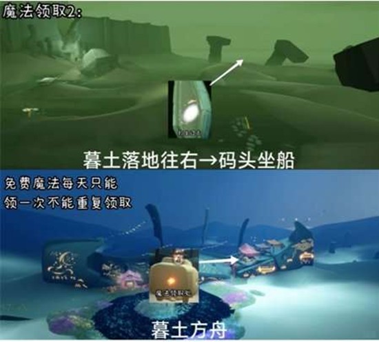 暮土大厅右侧码头坐船前往失落方舟,找到魔法工坊内的问号罐子即可领取。需要先完成魔法季向导任务才能解锁该领取点,解锁后同样每日可领取1次随机魔法。从暮土大厅出发,在右侧码头乘坐小船前往失落方舟,到达后寻找带有问号的罐子进行交互。
