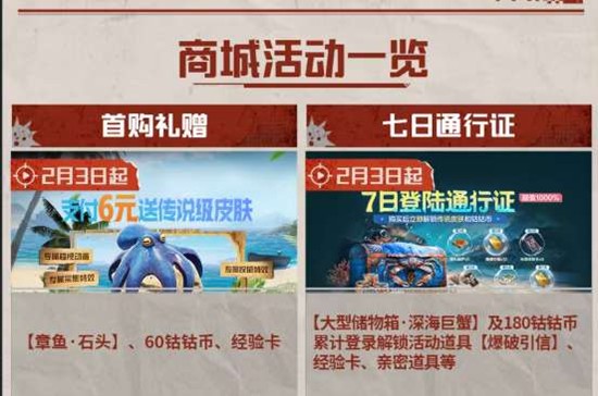 2月3日起,仅需10元(首购)即可解锁超值礼包,内含【章鱼·石头】传说级皮肤、60辐射币及经验卡,性价比直接拉满!