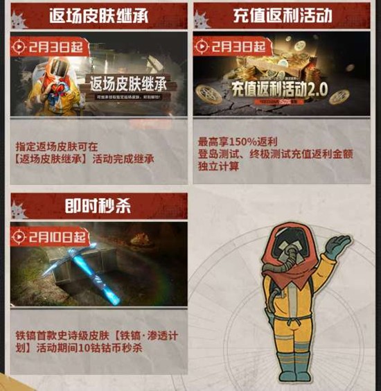 2月3日起,指定返场皮肤可在【返场皮肤继承】活动中完成继承。过往测试的珍贵收藏,这次可以无缝衔接,绝不让你的情怀白费!
