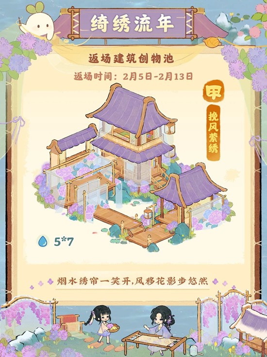 2026年2月5日「绮绣流年」建筑创物池以及「撷药荷锄归」山遇返场即将开启,感兴趣的山民千万不要错过萝!