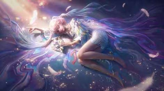 以食梦兽伯奇为灵感,破梦而来的灵韵化身。整体色彩如流动的梦境难以定义,周身萦绕虹彩渐变光晕;衣饰融入傩戏风格云纹暗绣,脚踝处金铃轻晃,肌肤烙印兽图腾纹样,充满灵气。