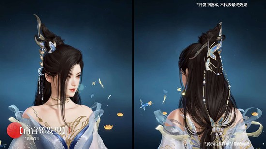 南宫锦【蝶恋衣】:薄纱之上鎏金错彩,引得蝶影翩跹,搭配极品发型【幽梦】与挂饰【梦蝶羽】。