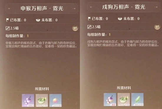 获得霓光款时会获得对应的家具图纸(直接买和擦出来都可以,剧情送的不算)可以在家园制作(需要的材料每种也不一样)