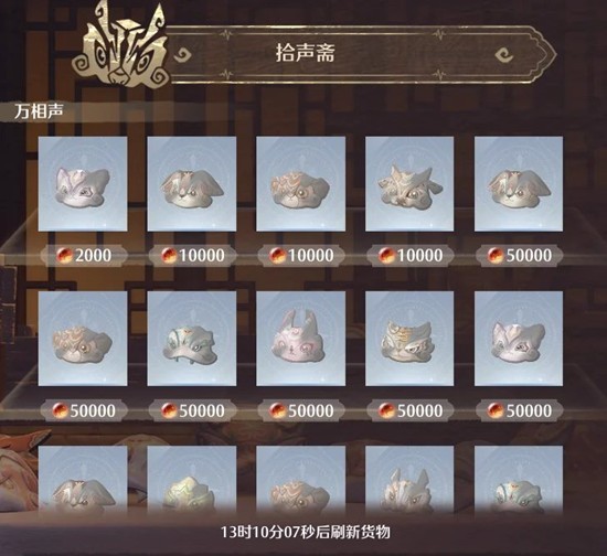 提醒:商店每天会刷新,固定有一个2000,三个1w,六个5w,六个10w。如果想收集不同的万相声,可以每天来买便宜的盲盒。