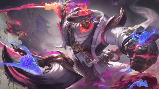 本次皮肤突破常规国风配色,以黑白水墨为基底,大胆融入玫红与宝蓝,在素雅的残卷意境中迸发妖异张力,塑造出亦正亦邪的守护者形象。改用巨笔为器,以墨为锋。笔杆雕刻兽首与肩甲呼应,毫端墨色沉郁,妖火流转,每一笔落下皆是封印妖魔的咒术。