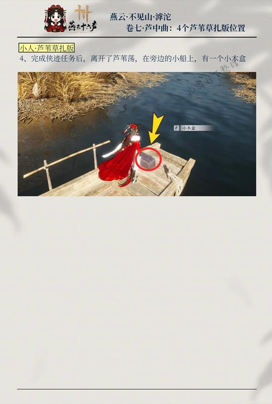 以上就是燕云十六声滹沱全新侠迹:芦中曲4个木盒位置在哪攻略的全部内容了,更多游戏资讯,攻略内容敬请关注切游网,您的支持是我们努力的动力!