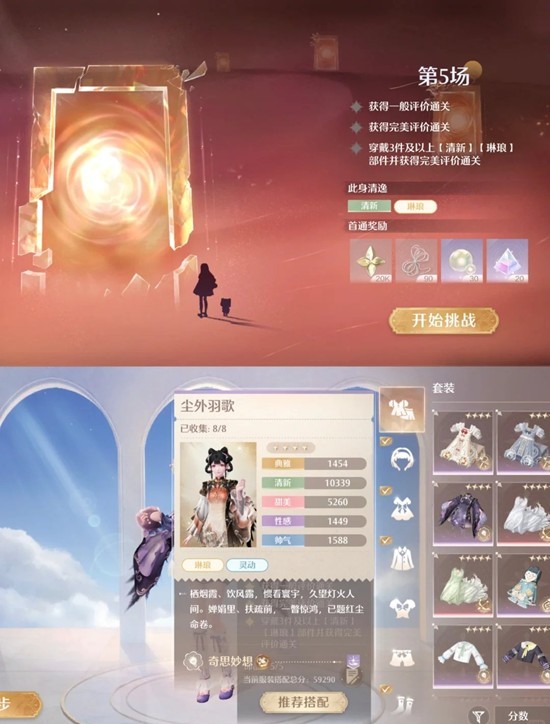 第五关:扇子套陪跑四星可以过,裙子焕新了,鞋子头发升到了10级,其余6级
