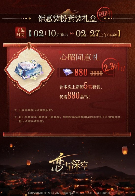 2月10日更新后~2月27日上午4:59,本次上新装扮套装打包购买折上折!