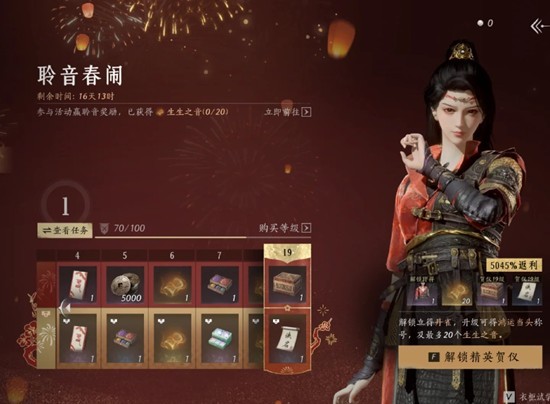 解锁小战令(皮肤)可额外获得10抽新年聆音道具+侠名+3折音
