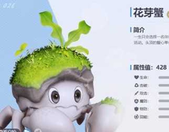 花芽蟹是伊莫土系阵容的核心选择,拥有土与草双属性,定位击破型宠物,基础属性428。其钻地技能可免疫远程攻击,但需警惕地震类技能。战斗特性包含蛰伏与蓄势待发,钻地期间积累气势层数,满5层钻出后获得25%输出提升与击破加成,持续15秒。
