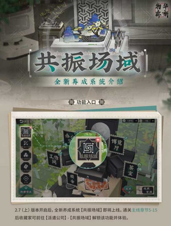 物华弥新共振场域系统是否已经正式实装?很多收藏家不清楚这个物华弥新全新养成玩法该如何解锁,其实通关主线章节5-15后即可在派遣公司中开启该功能,下面一起来看看物华弥新共振场域的具体玩法与养成机制。