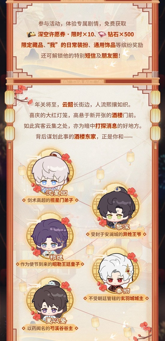 以上就是恋与深空全新活跃活动「韶华宴岁」将于2月10日开启的全部内容了,更多游戏资讯,攻略内容敬请关注切游网,您的支持是我们努力的动力!