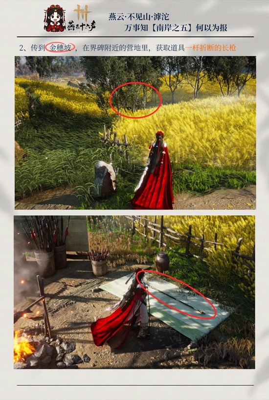 2、传到金穗坡,在界碑附近的营地里,获取道具一杆折断的长枪