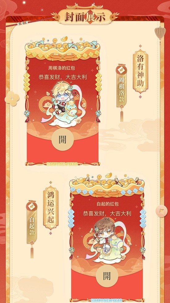 3.各角色的红包封面每轮限量发放,先到先得。若本轮选定的角色红包封面可领取数量为零,则本轮无法选择该角色。红包封面数量将在每轮活动开启时刷新。