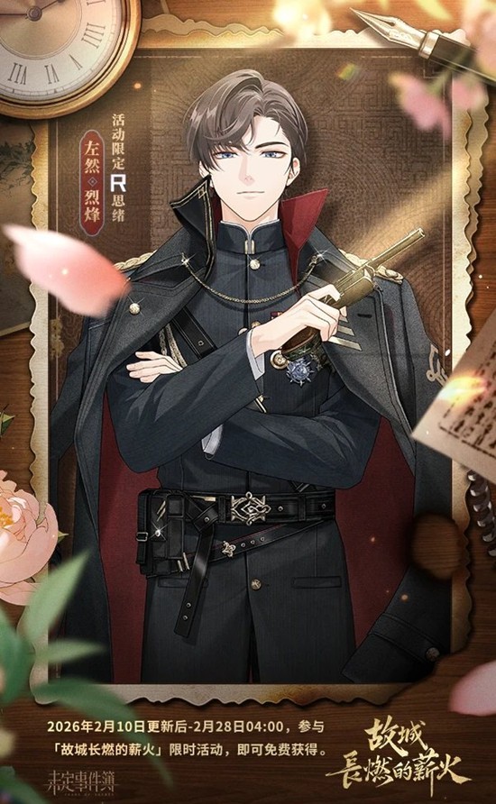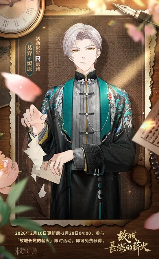 未定事件簿故城长燃的薪火限时活动福利明日开放获取~2026年2月10日版本更新后,「故城长燃的薪火」大型新春活动R思绪、活动限定徽章及邀请函开放获取!免费领取夏彦R思绪【凶焰】、左然R思绪【烈烽】、莫弈R思绪【燎原】、陆景和R思绪【炫火】、活动徽章【时和岁丰】及邀请函【墓道惊魂】,一起来和小编看看吧~