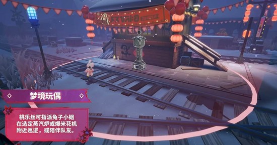 ➤梦境玩偶:桃乐丝可指派兔子小姐在选定蒸汽炉或爆米花机附近巡逻,或陪伴队友。兔子小姐能够与桃乐丝同步普攻,移动越过低矮交互物。可持续跟踪并暴露附近活动的逃生者。