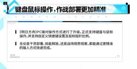 PC端版本支持键盘与鼠标操作,并支持自定义快捷键设置及鼠标指针比例调整。这一改动让作战部署更加精准高效,特别是在需要快速切换干员技能或进行复杂操作时,键鼠操作能够带来更细腻的控制感。