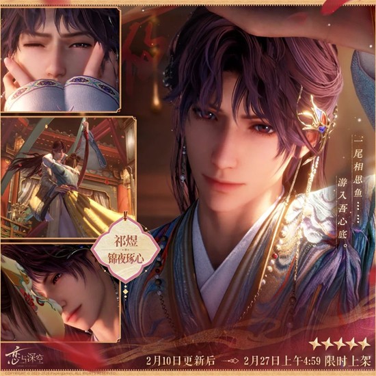 以上就是恋与深空人间缱绻意祁煜「锦夜琢心」今日上线的全部内容了,更多游戏资讯,攻略内容敬请关注切游网,您的支持是我们努力的动力!