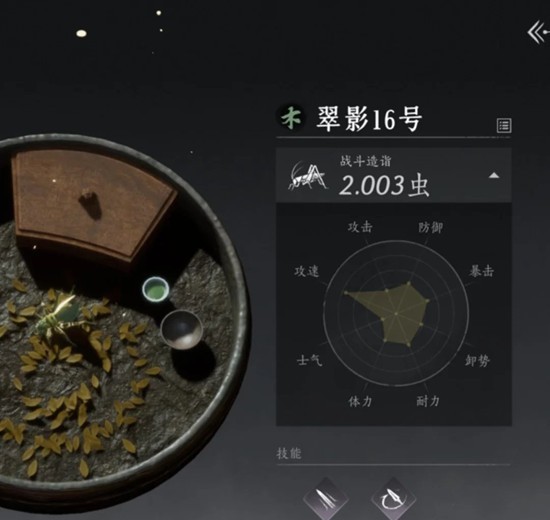 技能方面不建议培养,随机性太大,后期好蛐蛐用不完的时候可以再尝试