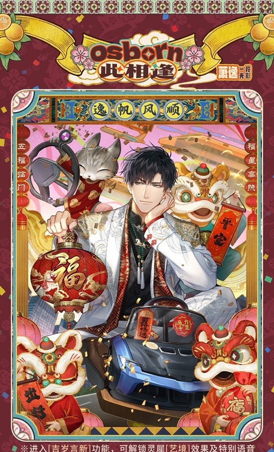 [6星]灵犀 萧逸・此相逢 一段含[艺境]效果。进入[吉岁言新]功能,可解锁灵犀[艺境]效果及特别语音。